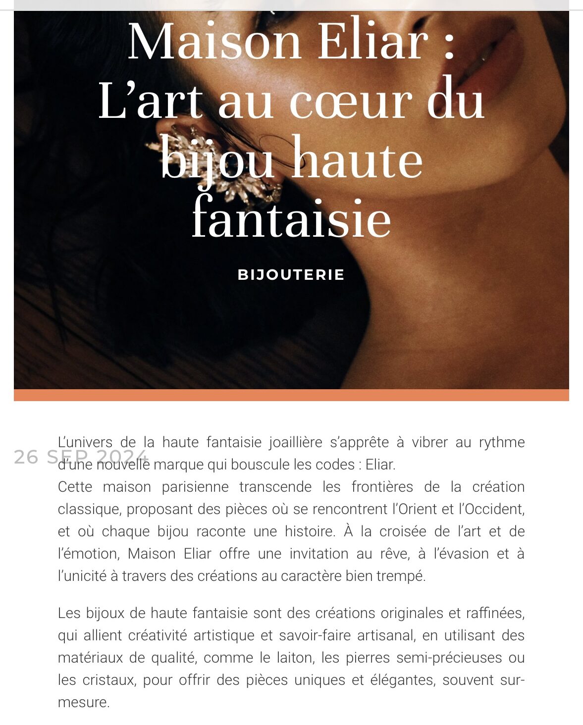TO POSITION ELIAR PARIS IN THE HAUTE FANTAISIE JEWELRY MARKET, KLIKT DEVELOPED AND EXECUTED A TARGETED PRESS STRATEGY.